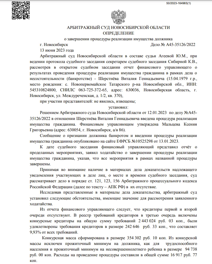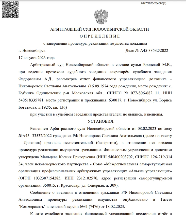 Дело № А 45-28218/2022 завершено 06.04.2023