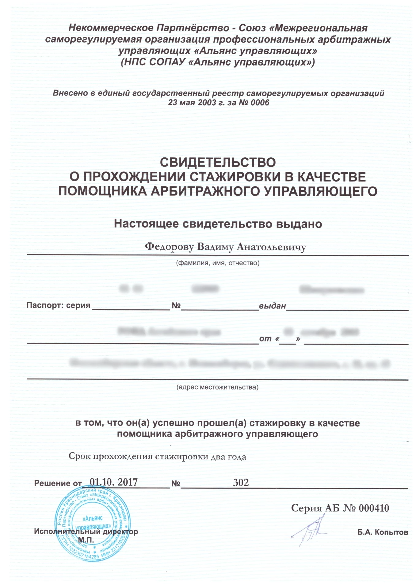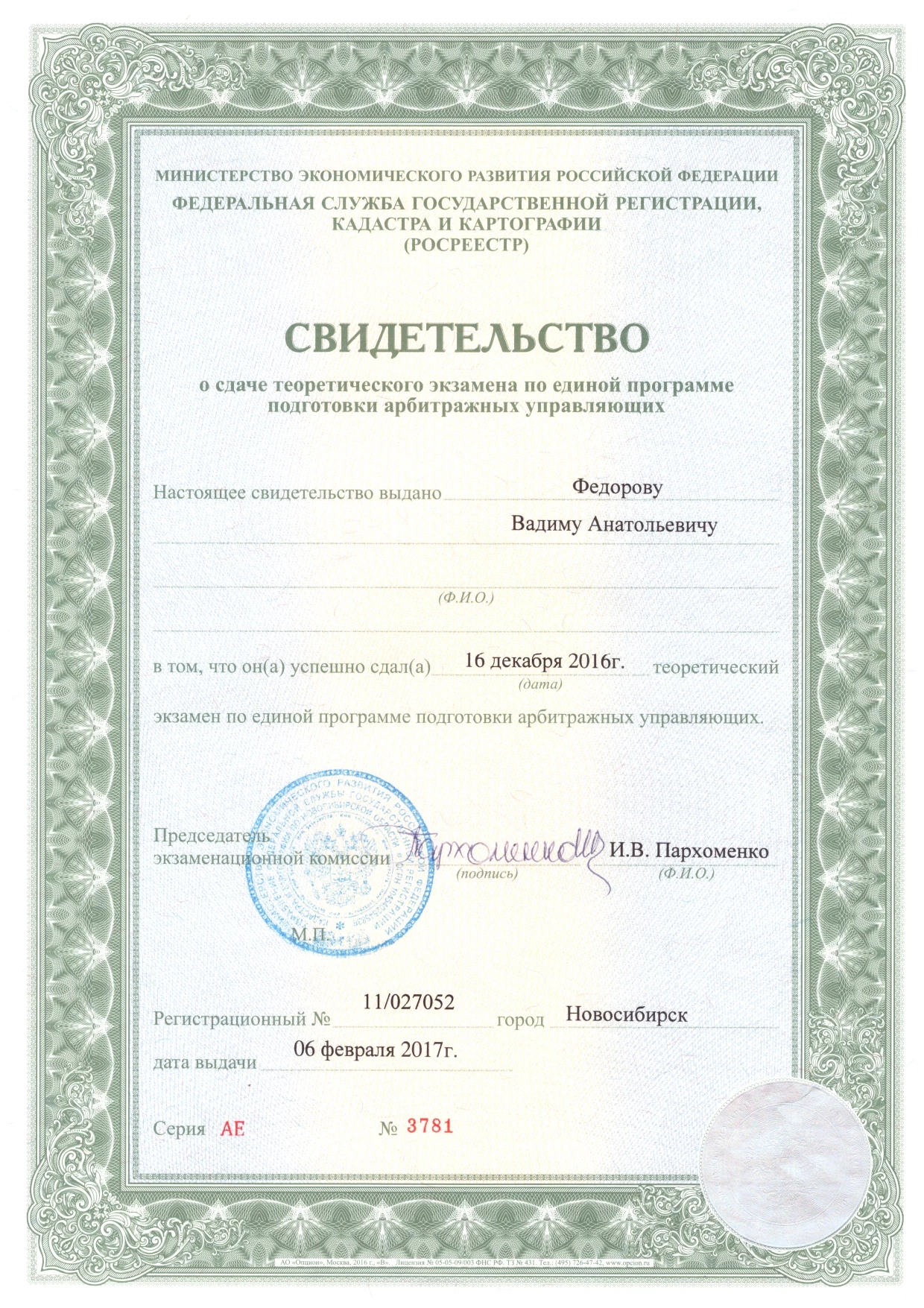 - Сдан экзамен по подготовке Арбитражных Управляющих, 2016 г.